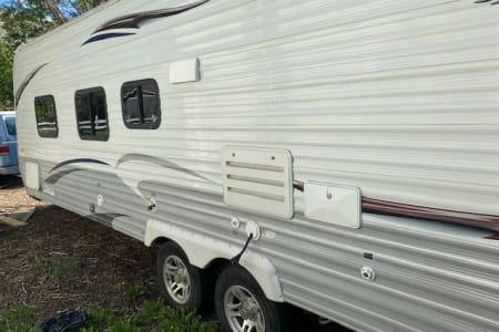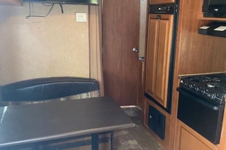 This is a great trailer as the layout is perfect for your adventures. It's 24.7' which means it's easy to tow but it boasts a lot of room to live as well as sleep. There is a bedroom that can be separated from the rest of the group. Additionally it has a fold out couch, a fold out table and 2 bunks. Otherwise it has everything else you'll possibly need: A/C, heating, kitchen sink, refrigerator, very nice bathroom and shower. There is plenty of storage also. Let me know what amenities you need and we can provide them. Hope to see you soon.