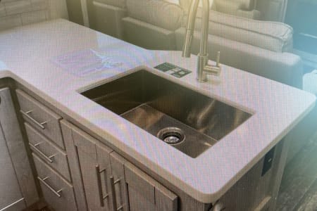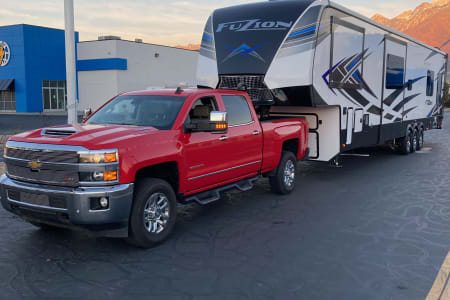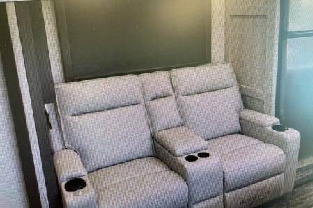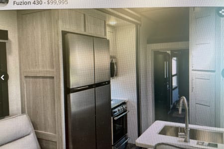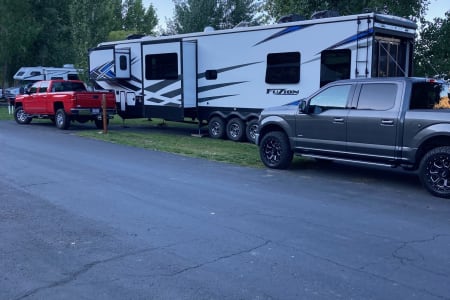 The living room is so comfortable and inviting for family and friends. The kitchen has ample storage and room, a large fridge/freezer, microwave and farm sink.. The garage has a full bathroom, 2 queen sized beds, we have a 20 gallon fuel tank with 88 octane non ethanol free fuel at $7 per gallon. A full sized Porch is connected to the Garage living area. Master bedroom is completely private with 2 large closets, large dresser, king size bed with memory foam. This Trailer has a lot of viewing windows and private shades for your privacy.