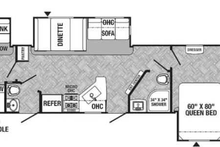 Take the whole family camping in this awesome camper! This camper has a suite styled room with a queen size bed and plenty of space for storage, a large dinette table that turns into a bed, a couch that turns into a bed and a large bunk room in the back with three bunks and plenty of space for the kids to play. This unit also has a large outdoor kitchen. You will not be disappointed with this one! NO PETS