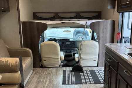 Immaculate, easy to drive class C RV perfect for your camping adventure! Whether you’re boondocking or going to a full service campground, this camper will fulfill your needs. NO smoking, pets, parties! Seatbelts for 7. Queen bed in back which has been upgraded to a really comfy bed! Double bed over cab. U-shaped table folds down into a double bed. Couch folds down in to a small bed great for toddlers. Lots of storage in the back. Comes with all your kitchen necessities including toaster and coffee pot. Linens can be provided at an extra cost. Complete with a table top grill, outdoor mat and a couple camping chairs, you will be well on your way to a great adventure!
