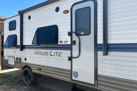 This is a brand new 2022 Ameri-lite 197BH (Bunkhouse). This beauty is ready to help your family make wonderful memories and can be towed with an SUV since she weighs 3,663 lbs unloaded and 5,000 lbs loaded to the max! We tow this camper with our Honda Pilot!