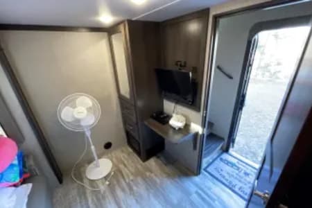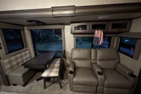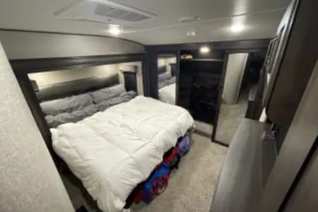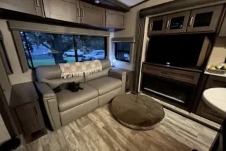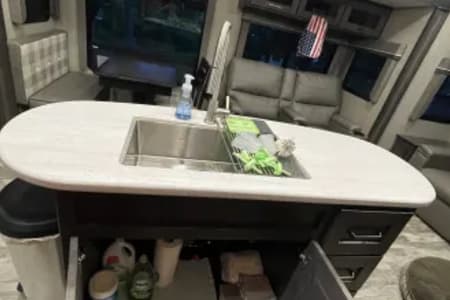 Our camper comes with everything you need for a camping trip. Fully furnished kitchen including pots, pans, dishware, cooking utensils, mixing bowls, measuring cups, etc. Plenty of outdoor items included such as a portable blackstone, tables and chairs, outdoor radio, and select outdoor games, outdoor area rugs and entry rugs. Can include linens and towels upon request. All setup items are included such as freshwater hoses, surge protector, sewage hoses, and 50amp cable. This unit has dual ducted air conditioners and furnace heat. We provide one topper for one of the pullouts. We also provide cleaning supplies, vacuum, and broom. Renter is expected to leave unit clean as it was delivered. Other special request can be entertained per renters request.
