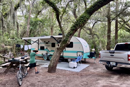 Step into a 1950s road trip dream — an aqua-green Gulfstream Vintage Cruiser that blends old-school charm with all the comforts of today. Delivered and set up for you at Long Point Park in Melbourne, Florida or Sebastian Inlet State Park in Melbourne, Florida, this camper is ready for your getaway the moment you arrive. No hauling, no hassle — just unpack and start making memories.