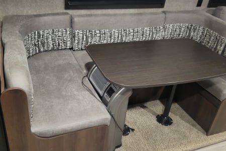 This is a newer spacious camper that is jam packed with everything you need on your camping trip. Large central slide giving you extra room, comfortably sleep 8-10. A queen master bed, couch and table both convert into full/queen size beds, and 2 full size bunks in the back bunkhouse. All have bedding including pillows, sheets and covers. Full functioning kitchen with refrigerator, stove, microwave, coffee maker, sink, dishes, pots, pans, knives, silverware... TV and DVD player. Indoor and outdoor speaker system connected to AM/FM/ CD radio. Bathroom with an external door access to keep traffic lower inside the camper, which includes toilet, toilet paper, shower, towels, and linens. There is hot and cold running water. An AC to keep it cool during hot days and a furnace if the temp drops at night. Enjoy the added outdoor grill and 4 chairs under the retractable awning. Pets are welcome but NO smoking please. We will tow it and set it up at your confirmed reservation location. There is a $75 setup/breakdown/cleaning/sanitizing fee.