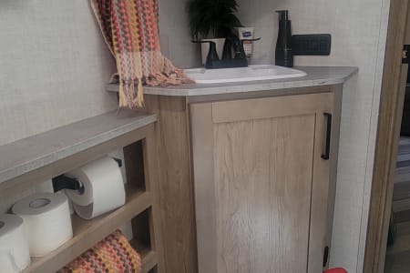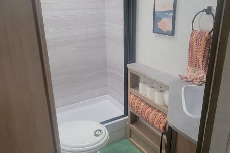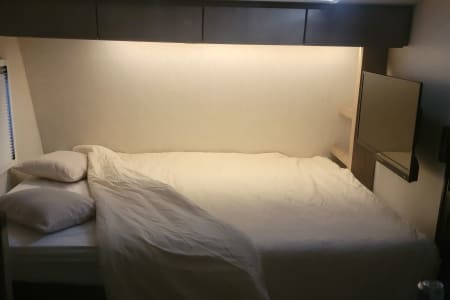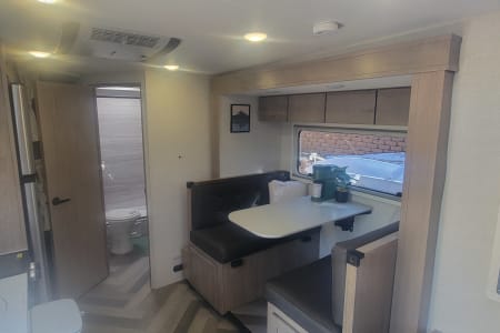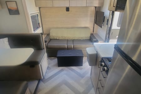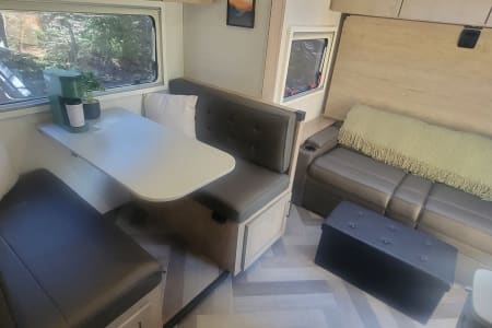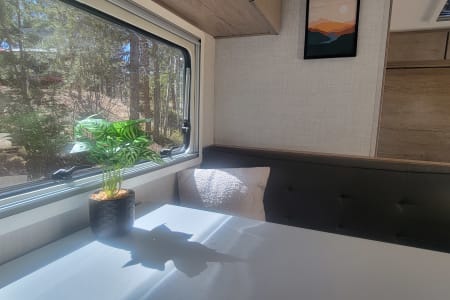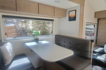 Once you get there, you'll be able to relax in comfort and style. The Ember 191MDB is packed with amenities that will make you feel like you're living in a luxurious hotel, including comfortable beds (bleached white linens), a beautiful bathroom, and an extremely functional indoor kitchen. You can even cook and dine outside under the electric awning at the outdoor kitchen, all while enjoying the breathtaking scenery around you.