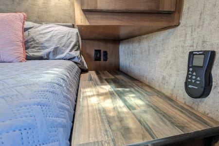 Power all this and run the roof mounted air conditioning and microwave with a standard household outlet using the included active start 30 amp plug adapter.