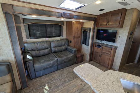 Relax after your adventure in southwest Colorado in this 2022 Outdoors RV with open rear living area, convertible mountain dinette, convertible leather sofa and 12 volt TV.