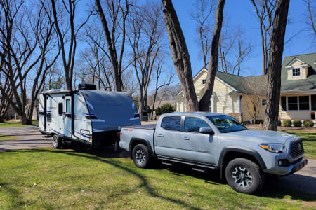 We will be happy to share our RV for a weekend get away with your family. Easily towable with most large SUV's and half ton or larger trucks. Comes fully stocked with linens, dishes, cookware, silverware, small propane grill, etc. All you need to pack is your clothes, food and toiletries and hit the road. If you have any questions about the camper itself or included items please feel free to reach out.We will provide detailed information and help on how to operate and have a good experience.