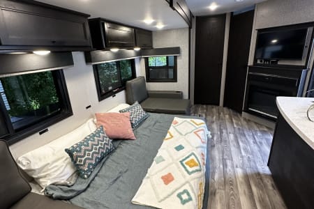 If you are an experienced RV family or new and wanting to learn the ropes this trailer is a dream to vacation with. We are happy to go over whatever training for its use that you need (everyone starts somewhere!) This is a fully loaded model with custom cabinetry and upgrades galore. Wanting to try working from the road? The Starlink internet is a game changer. Working from breathtaking destinations? Yes please!