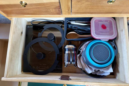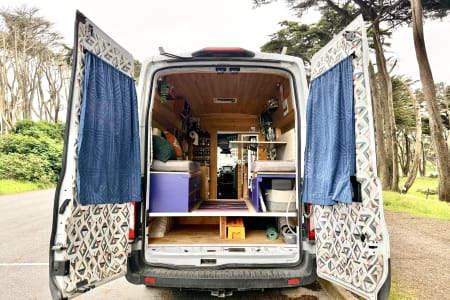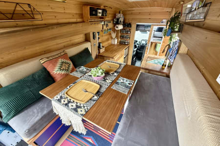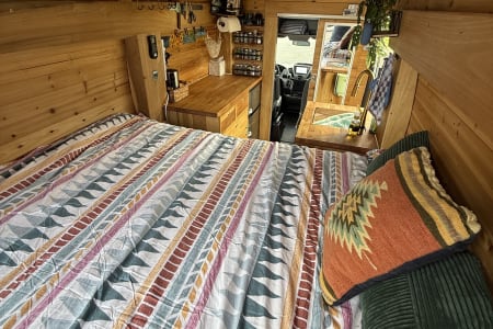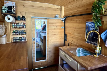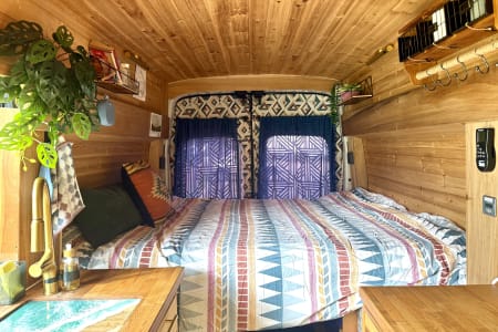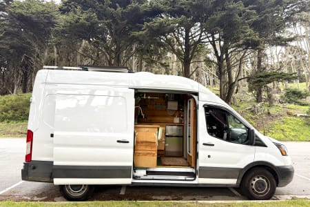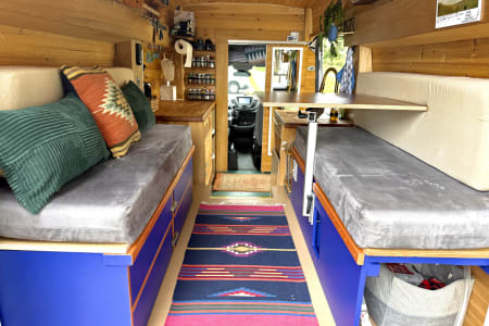 Chariot was created to chase a wild dream of mine back in 2019 and she has brought me to the wildest dreams I could ever imagine after living full time in it for one year. Chariot is a Ford Transit XTL 250 High Roof cargo van (good for tall human to stand in but not driving :). Then piece by piece, wire by wire, my carpenter friend and I designed and built the basic structure. She went across the country 3 times after the built and have become something bigger than I expected. Over the years, my partner Derek and I, slowly refined and upgraded everything to what you see now. Chariot is not commercially designed but self designed with lots of charm and personality. She's not high maintenance, however, your journey will be a lot easier if you pay attention to her details and treat her with respect.