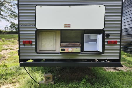 Introducing, Janice! When you step into this brand new 2023 travel trailer. You are going to say "Good Lord Janice". And rightly so, this model is very roomy, with one large slide, as the pictures show. At the main entrance there are two full size bunks and a full size jack knife sofa with flip out cup holders, this baby is comfy. The wall mounted tv and modern look make a person just want to kick off your shoes and relax. You also have a great dinette table that makes into a full size bed. As you move towards the middle of the rig you will find a fantastic kitchen and a pantry that will not disappoint. If you don't want to use the indoor kitchen, there is an outdoor kitchen at the back of the unit with a griddle and a mini fridge. You then will find the bathroom with plenty of storage, a full size shower, vanity sink and toilet. Up front is the private master bedroom with a sliding door, plenty of storage and a queen bed. Also has its own exterior door to stay out late under the power awning with LED remote controlled lighting where there are speakers for the FM Bluetooth radio.
