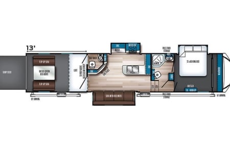 This gorgeous toy hauler has all top of the line amenities, and is FULLY STOCKED. From it's sound system, 2nd wet bath, and back deck to it's on demand water heater, duel AC units, full size refrigerator and couches that recline, vibrate, and heat this camper is the true definition of Glamping. All of our campers come fully stocked with anything you may need for your next great adventure. Just pack your food, and clothes. We have taken care of the rest! The kitchen is stocked with plastic wear as well as, disposable. Pots, pans, and cooking utensils are right at your finger tips. Within the kitchen cabinets you'll find a coffee maker, toaster, waffle maker, serving platters, and bowls, collapsible coolers, marshmallow roasting sticks as well as a few kitchen staples you may have forgotten like simple spices, condiments, and cooking oils. The bathrooms are fully stocked with towels, toilet paper, and travel size toiletries in case you forget something at home.
