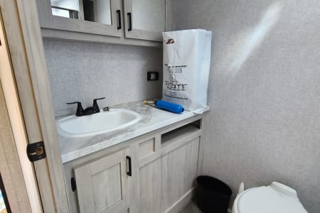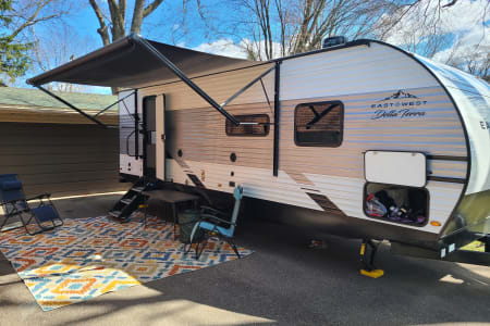 Beautiful, Clean, and Ready-to-roll, this 32' 2022 Travel Camper easily sleeps 4-6. Upgraded options include Reclining Lounge Chairs, a Fireplace, a 40" TV, a King-Size Bed, a large bathroom, and a large storage pantry for all your storage needs. It is pet-friendly and ready to accommodate any camping trip in luxury.
