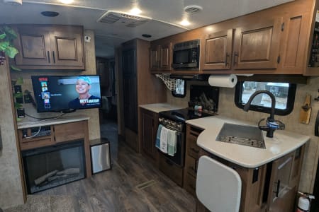 Welcome to the Wine Den! This 2023 Blackstone Titanium series by Outdoors RV is your ticket to enjoying the outdoors with your furry friend and a glass of wine! The Wine Den comes with a Queen-sized bed, a dining-to-bed conversion for the kids, and a small pillowtop for the dog. And because it's a Titanium series, Outdoors RV offers all the comforts of a home-away-from-home, with a large 10 gallon hot water tank, 80 gallon fresh water tank and 30 gallon separate gray/black tanks so you won't need to dump every day and a 30 lb propane tank. Tons of storage space with a pass-through storage outside for all your gear, as well as under the bed storage and a slide-out closet in the bedroom. The Wine Den uses 30 amp power to operate the centrally-located air conditioner and a forced-air fireplace for those colder nights cuddled up to a movie.