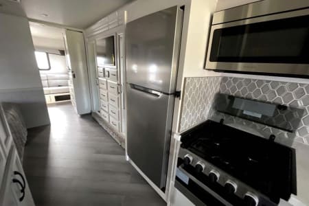Overall, the Fortis is built to get families where they’re going and is loaded with features to maximize comfort, safety and convenience. The open and spacious galley along with the L-shaped dinette, residential style appliances and additional pantry storage will have the entire family smiling. Don’t forget the exterior kitchenette, with microwave, sink, and a griddle for entertaining.