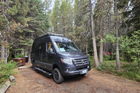This 4x4 adventure van is in like new condition, with only 20,000 miles on the odometer. Based off of a Mercedes Sprinter 2500 chassis, the van is easy to drive, gets good gas mileage (~15 mpg), and can park into any regular parking space. The back lounge area converts from a comfortable lounge area into a 70" x 72" king sized sleeping area, which can sleep 2 adults or 2 adults/1 small child comfortably. The bench seat in the back has 3 seat belts. It has all the amenities to keep you comfortable on your camping trip, including a furnace/air conditioner, hot water heater, a full wet bath with cassette toilet/shower, gas stove and kitchen sink, microwave, and a refrigerator with a small freezer. It also has a 400 AH Lithium house battery and 3000W inverter that can power everything in the van including the microwave and provide power for several days without needing an electrical hookup. The van also has a roof-mounted 200W solar panel that recharges the house battery when parked / driving to keep the lithium battery topped off.