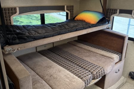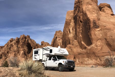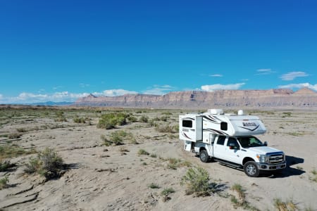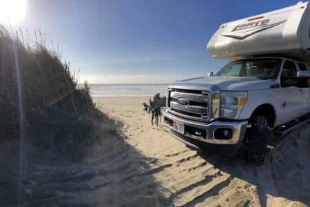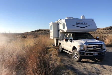 This is an incredible 2016 Lance 855S all season Truck Camper with a slide out that provides extra space. It is attached to our 2012 Ford F-350 4X4 which allows you to stay in really cool locations most trailers and RVs won't be able to navigate or fit. This thing is fully loaded, it has everything for dry and full hookup camping. It is setup with the following: solar, inverter, microwave, generator, TV, DVD player, 12 CU refrigerator and freezer, heater, AC, shower, bathroom, dual sink, queen bed, dinette table with booth style seating that folds into a twin bed, fold out toddler bunk with safety netting, and outdoor shower.