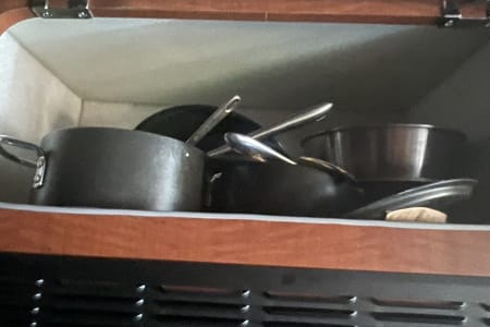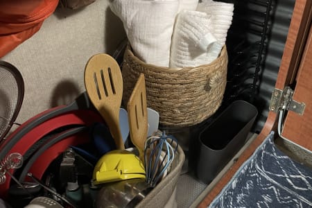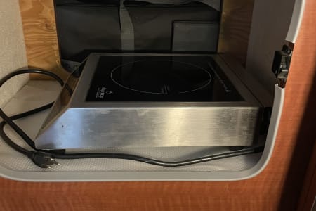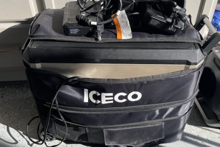 The van needs to be hooked up to 30amp power for the refrigerator, ac/heater, water pump, and microwave to use. I added a battery powered small refrigerator/freezer cooler, a/c with heater, and a Bluetti power station.