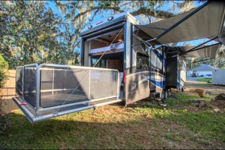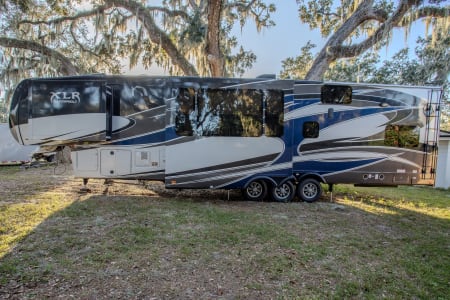 Are you ready to escape into the great outdoors while enjoying all the comforts of home? If Yes! Than meet “The Full Retreat”, a stunning 42 ft Forest River XLR toy hauler, designed for ultimate adventure! *Please note: our unit is currently only available for 50amp hookup. We are not available to do “dry camping” at this time!