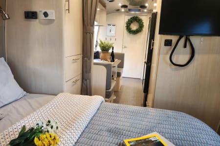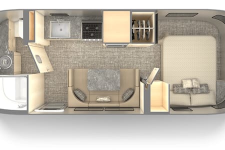 - Sleeping arrangements won't be a problem in this 23ft Airstream, as it comfortably accommodates up to four guests. The private bedroom area boasts a queen sized plush mattress, ensuring a restful night's sleep. The dinette table converts into a 2nd bed.