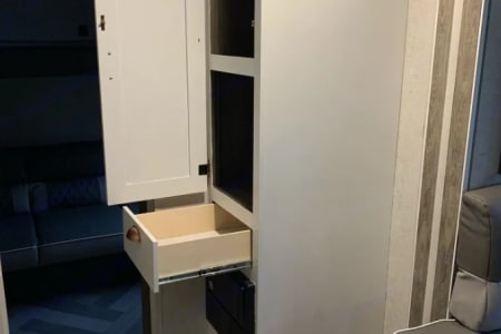 This Salem Cruise Lite 273QBXL sleeps 8. This is great for couples, families, or groups of friends ready to have an adventure. This is the total glamping experience. Contains a full kitchen and outdoor kitchen. Dinette and couch is on a full slide. 1 full bathroom. 1 bunkhouse with 3 twin beds and 1 fold out couch.