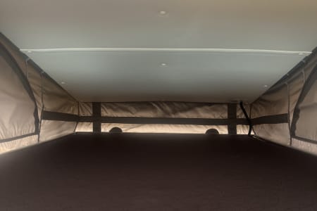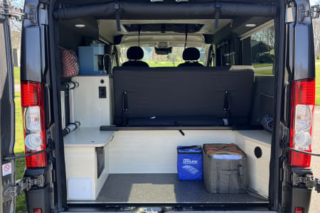 With separate sleeping areas, generous cargo space, and interior heating, The Coop is designed for comfort and convenience. Inside, you'll find modern features, including two full-size beds. The main sofa bed (54" x 72") comfortably sleeps two adults, while the lofted pop-top (49" x 72") is ideal for two kids or one adult. Basic linens, including fitted sheets and towels, are always provided, with additional bedding available upon request.