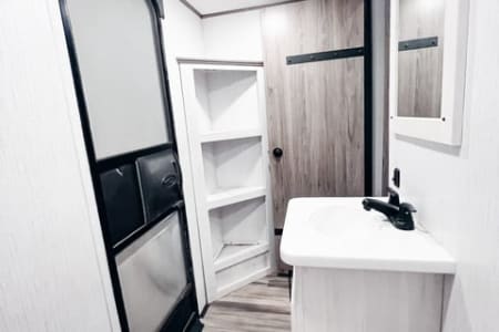 Come and stay in our beautiful Fifth Wheel RV available for your weekend and everyday needs and getaways. This RV boasts a beautiful interior and exterior layout that includes 4 slides, appliance (oven, stove, and microwave), over under refrigerator, full size pantry, plenty of storage, loveseat recliners, and BONUS washer and dryer! Bedroom includes a Queen size bed. 2 Full bathrooms. Outdoor entertainment includes one awning, bluetooth radio, and smaller grill .