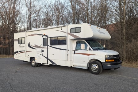 What a beauty! This RV is all about simplicity and ease of use while still being ultra comfortable for an extended trip or just a weekend getaway. Low mileage and extra clean! You get all the comforts of home with a large queen size bed in the bedroom, a spacious corner shower, refrigerator and plenty of counterspace in the kitchen. There is also a large bed above the cab, a fold down couch and the dinette can be converted into a single bed. You can dry-camp with large on-board fresh water and waste tanks, a generator, air conditioner and furnace. Don't forget the huge storage basement space on the exterior and lots of cabinet space on the inside. What really sets this RV apart is the Chevy chassis for easy handling while on the road. If you are new to RVing, we will take all the time you need to make sure you will be comfortable and understand the vehicle. We are passionate about RV travel and want to be sure you enjoy your trip with us. Be sure to ask us about our add-ons: bedding kit and linens, Propane top-off and more