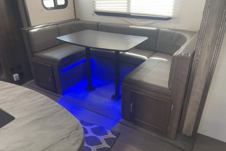 - Outdoor Perks: A power awning, outdoor seating area, and a cozy ambiance make your campsite the perfect place to soak up the great outdoors. We include an outdoor area rug.