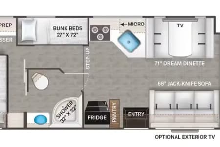 Enjoy the extra space that comes with the full-wall slide in this Chateau Class C gas motorhome! You'll have all the room that you need to spread out and enjoy the master suite, the 68" jackknife sofa, and the 71" Dream Dinette. Plus, your kids will be super excited to find a set of bunk beds as well as a 54" x 96" bunk above the cab. There's a dual-entry bath which can be accessed from the main living area or the rear bedroom and a 39" TV w/Swivel.