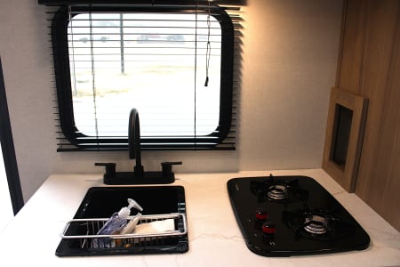 Whether you're cooking up a meal, charging your devices with USB and type C ports by each bed, or enjoying the cool AC on a hot day, this RV has you covered. The spacious under-bed and exterior storage ensures you have room for everything you need on your adventure.