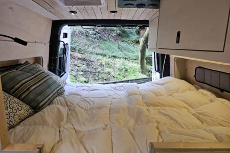 We wanted to have enough battery to run everything we needed, so we installed a complete Victron electrical system with a 5400 A/H LIfePO4 battery, 400 watts of solar panels, a 30A shore power charging system, and twin DC-DC 50A chargers while you are driving. Our 3KW pure sine inverter means that you can have 120V electricity as well. There are plenty of 120V and 12V outlets and, of course, conveniently placed USB and USB-C ports.