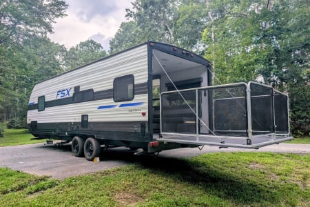 Step into a new realm of camping with our 2021 Forest River Salem FSX 260 RT. This toy hauler is built for those who want to do more than just sit around a campfire. Inside you'll find modern and cozy accommodations with a large and open galley, nice bathroom and a cozy bedroom with a comfortable Queen bed in a back. The highlight however is undoubtedly its robust rear deck! Designed to accommodate all your outdoor equipment. This means you can effortlessly bring along everything from jet skis for lakeside fun to motocross bikes for a weekend on the track, or even full sets of hunting or fishing gear without sacrificing interior living space.