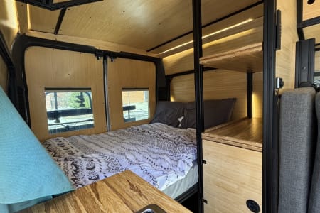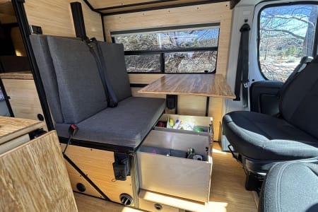 A perfect van for your adventures! Built with everything you need, and no fuss! Cozy floorplan with lots of seating to relax, play games with your friends, cook a nice meal or even work if that's your jam!