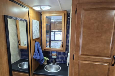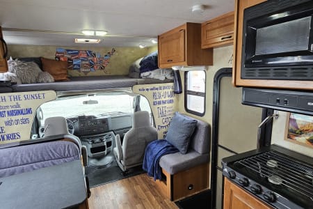 Sleeps 6 comfortably. The queen size bed in the back comes with linens on it. The bathroom is stocked with toilet paper and bath towels. The kitchen is fully stocked including a griddle, toaster, crock pot, pots and pans, utensils, plates and cups (if you would not like these things included we can take them out). All the hoses and necessary tools are included for plugging it in, emptying the tanks etc. TV with DVD player is included. 2 inch hitch receiver included, great for bringing rack for biking!