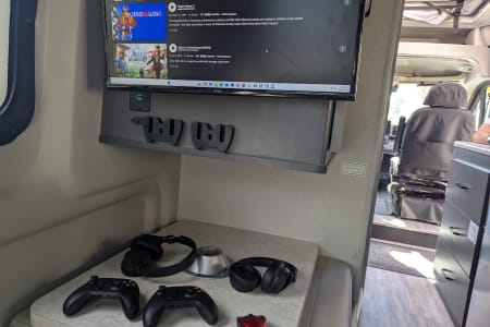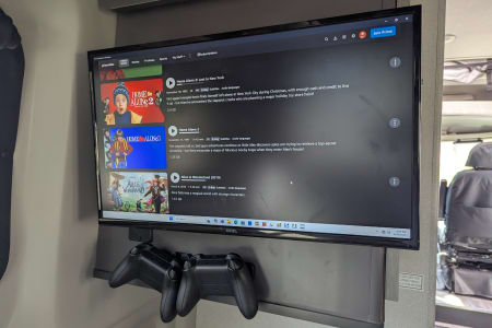 The TV comes with more than 60 pre-loaded movies in a variety of genres. If you would like to watch something that is not on our list, you can request it, and we will do our best to accommodate your request.