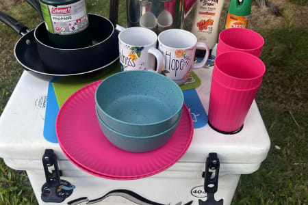 We will accommodate all of your camping needs, including all bedding/linens/towels for up to 10 people, coolers, camping stove, propane, sink tub, all cookware, all utensils, cooking oil, spices, rechargeable solar Lanterns, headlamps, Bluetooth waterproof speaker and more.