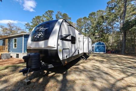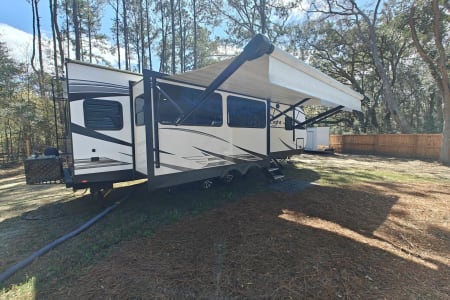 *Exterior Features: two large power awnings with LED lighting, outdoor shower, and two spacious exterior storage compartments.