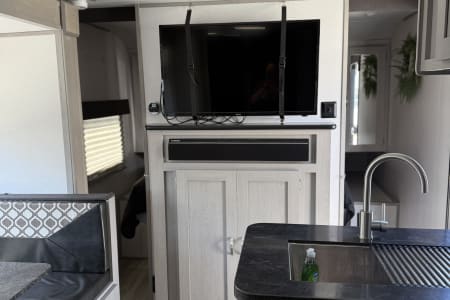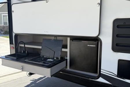 Outdoor Fun: Extend your living space with the electric awning and outdoor kitchen.