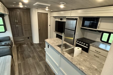 Step into your next adventure with this beautifully designed 2022 Keystone Cougar Half Ton 34TSB travel trailer. Built for families and those who crave the perfect balance of comfort and convenience on the road, this RV is equipped with high-end features that make every journey feel like a luxurious retreat. Whether you’re headed to the mountains or enjoying lakeside camping, the Cougar 34TSB has everything you need for an unforgettable experience.