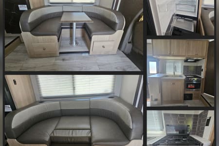 •Cozy Living Area: Relax in a beautifully designed living space with a U-shaped dinette and plenty of storage.