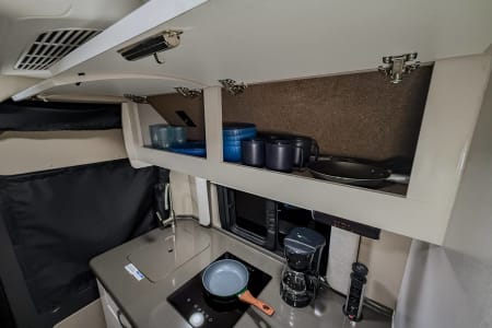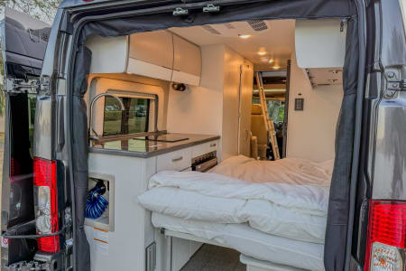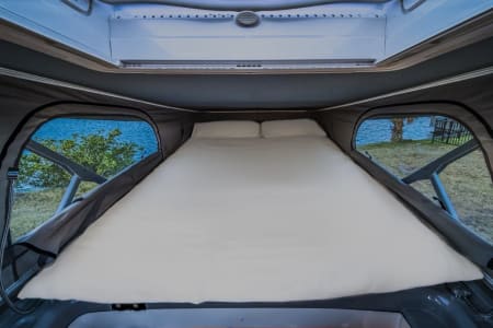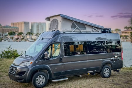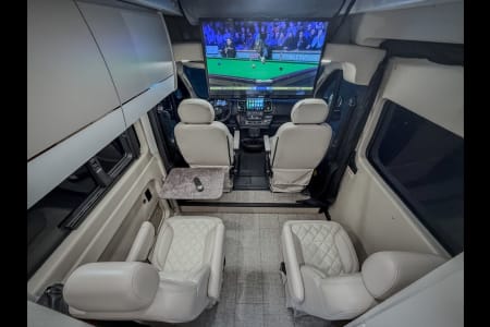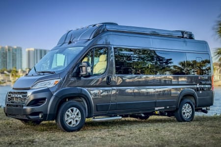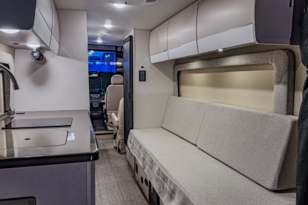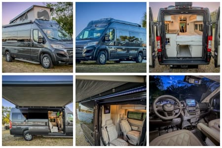 Brand new and best in class! Has one Queen and one double bed. Extra comfortable seats with seatbelts for all 4 passengers. Large kitchen and bathroom. Biggest AC unit in the segment. Overhead , underbed and underfloor storage. Fully stocked - including sheets , towels , dishes and cookware and coffee maker. Two wireless chargers. JBL wireless speaker. RV delivery and pick up and set up.