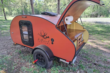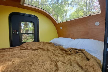 Love camping but want something a little more comfortable than a sleeping bag on the ground? Teardrop campers are a great alternative. No lengthy setup process, just pull into a campsite and set out your chairs. Enjoy sleeping in the cabin on a plush memory foam queen mattress (along with freshly washed sheets and bedding) as you stargaze out the large moonroof at night. One guest can relax in the cabin while another prepares food in the galley, maintaining conversation and exchanging snacks through the pass-through windows.