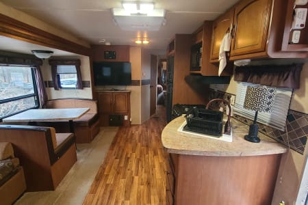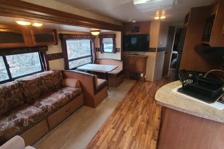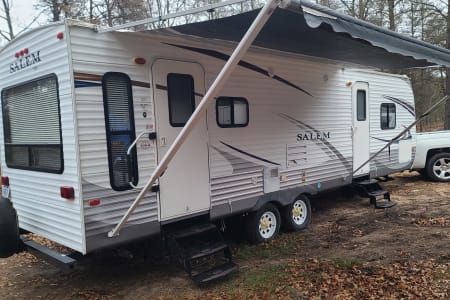 Nice travel trailer here...very large..feels like home away from home. Large living area slide out. Excellent for a duo...but can house a single family plus. Comfortable well maintained travel trailer.