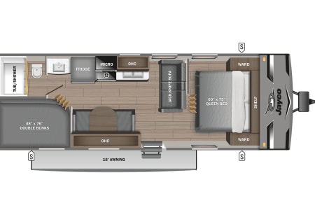 Enjoy modern amenities like a fully-equipped kitchen, bathroom with tub/shower, cold A/C, and plenty of storage for your gear. Whether you're exploring the great outdoors or just kicking back under the power awning with your favorite drink, the Jay Flight has everything you need for a smooth ride and memorable stay.