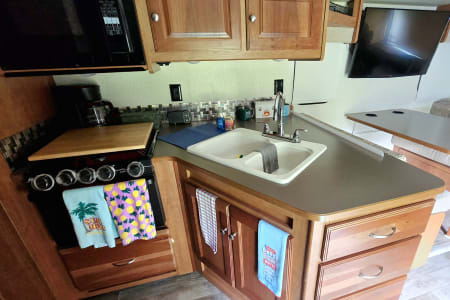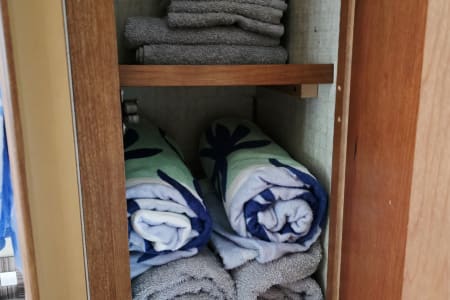 With a large 2-door refrigerator/freezer, 3-burner range with oven, and a microwave/convection oven, the galley has everything your family needs to prepare meals.