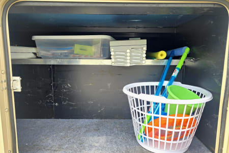 Exterior features include automatic doorsteps & a TV to watch the game or have a movie night under the stars. With large, locking storage bays, you’ll have plenty of room to bring lawn chairs, coolers and toys for outside!