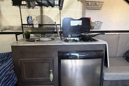 Fully Equipped Kitchenette – Cook up your campfire favorites with the outdoor grill and indoor amenities.