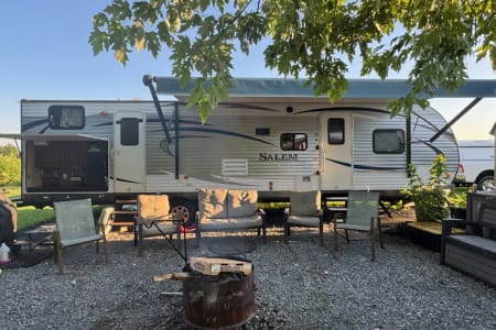 Experience the ultimate blend of comfort and outdoor adventure with our Salem Forest River bunkhouse camper! With ample space to sleep 6 Adults + 2 Children, it's perfect for families and groups seeking a memorable vacation. Unwind in the cozy interior or relish the fresh air while cooking in the convenient outdoor kitchen. For delivery, renter must be present at time of delivery. Campground information and reservation slot/site # must be forwarded to owner two days before delivery is due. If you need delivery/pickup, Sundays are limited for us and will depend on location. All other days are flexible for delivery & pickup.