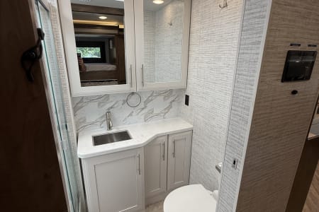This Jayco super “C” RV has about everything you can think of. The children will love the overhead bunk. And the diesel 6.7L Cummins has plenty of power to pull a trailer behind it.